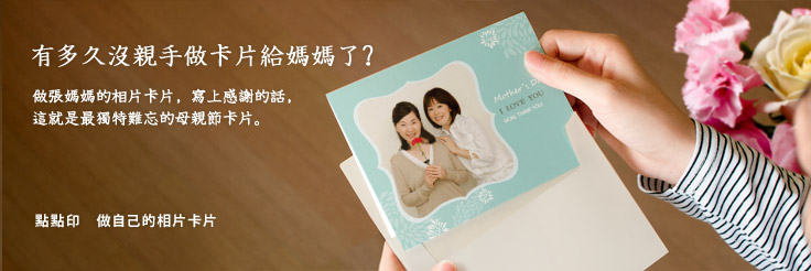 今年就用家人的照片做成禮物感謝您,因為母親節最想看到的就是媽媽幸福的笑臉。